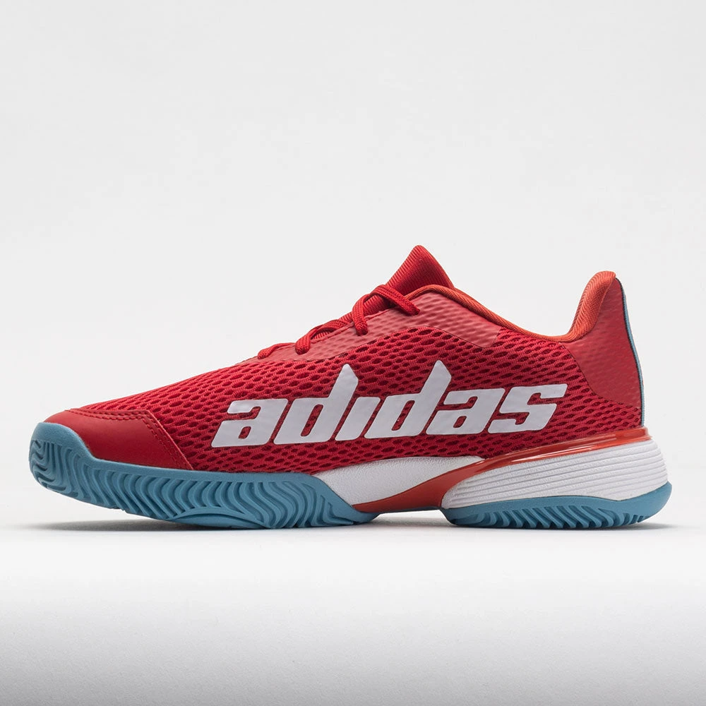 The adidas Barricade Junior gives young players the platform for domination. These junior tennis shoes feature an intuitive lacing system that locks you in by pulling down the tongue to match your foot shape. In the heel, a Geofit system helps you feel connected to the court. Underneath, a cushioned Adiprene midsole and Torsion System add comfort and stability. Made with recycled materials, the adidas Barricade Junior steps toward smashing plastic waste.